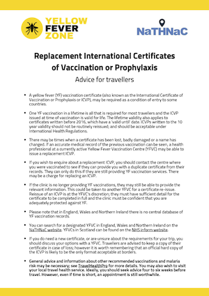 Replacement International Certificate of Vaccination or Prophylaxis: information for travellers